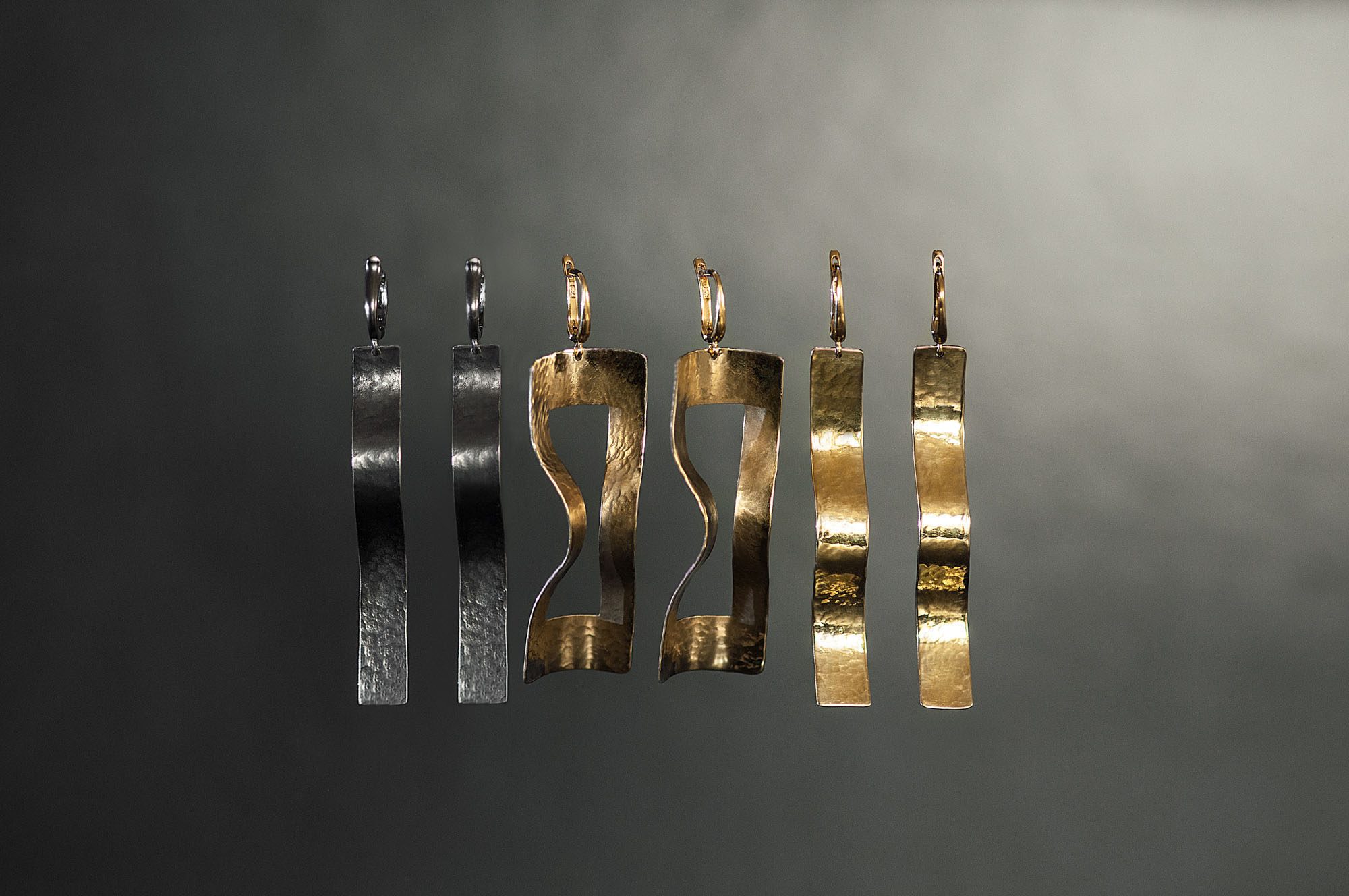 Skulptūriškos formos auskarai „Bangos“ įkvėpti natūralaus judesio ir švelnios jūros tėkmės. Lengvai banguojanti linija sukuria subtilų dinamikos pojūtį, o faktūruotas metalo paviršius žaismingai atspindi šviesą, suteikdamas išskirtinio charakterio.
