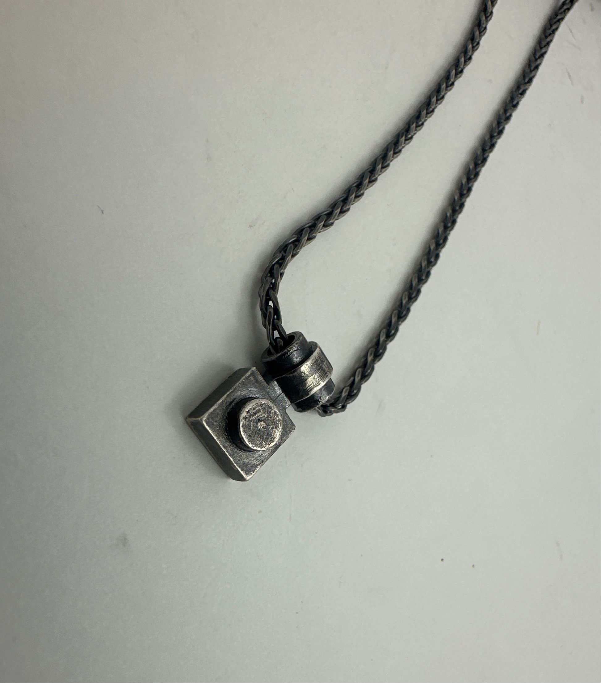 Minimal, iconic, and instantly recognizable – Pixel Brick celebrates the spirit of creativity, one stud at a time. Cast in oxidized sterling silver, this small geometric pendant echoes the digital and physical worlds of building, play, and imagination. Subtle in size but rich in meaning, it’s perfect for makers, dreamers, and anyone who grew up stacking ideas into reality.